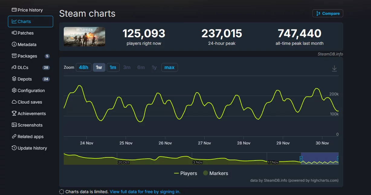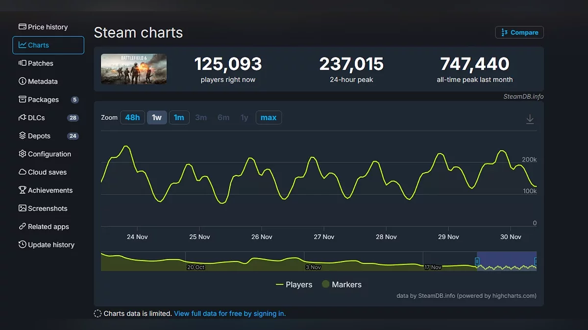 Более того, текущий суточный пик Battlefield 6 оказался заметно ниже, чем у ARC Raiders, которая за тот же период собрала около 390 тысяч игроков. Это особенно показательно, учитывая, что PC является ключевой платформой для Battlefield, в отличие от Call of Duty, где основной упор традиционно делается на консоли.