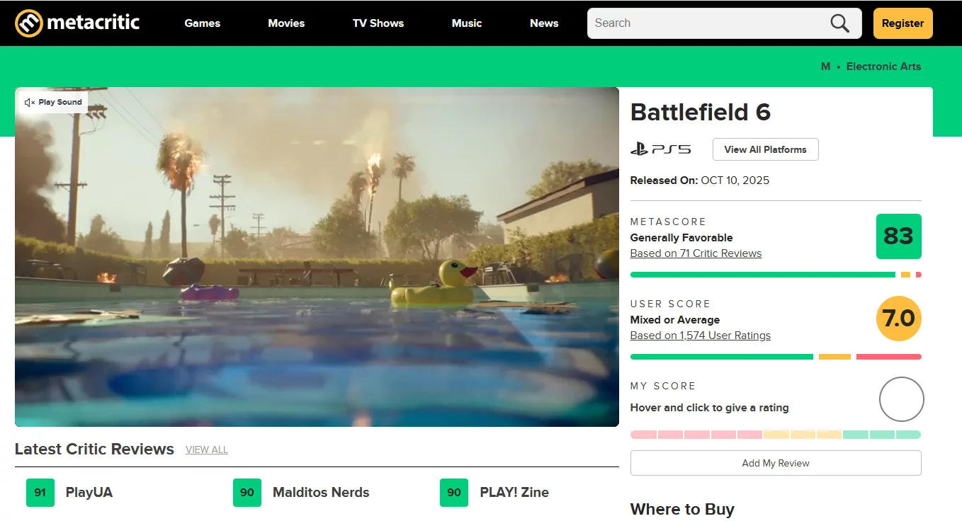 Ситуацию усугубляет и пользовательская оценка. После первоначальной волны восторгов Battlefield 6 опустилась до статуса второй самой низкооценённой части франшизы. Возвращение серии, безусловно, получилось громким, но игроки всё чаще указывают на проблемы, которые до сих пор остаются нерешёнными.