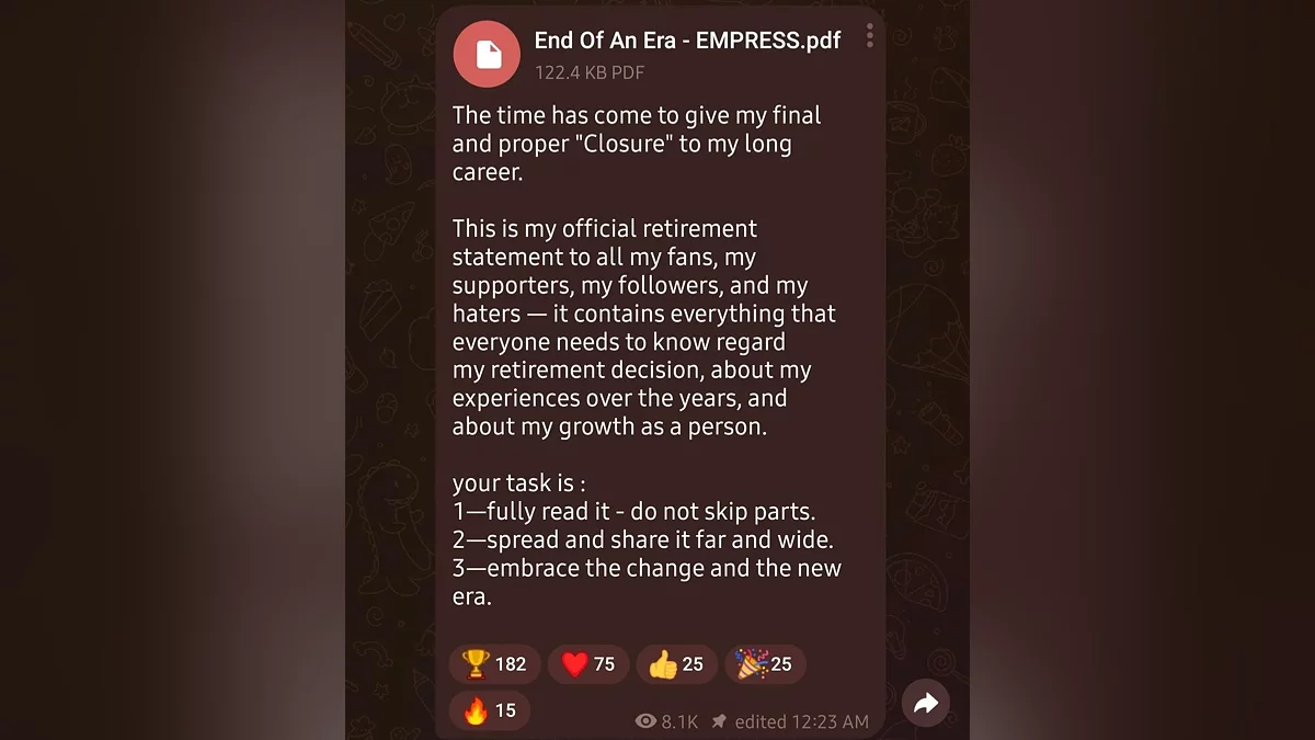История с уходом EMPRESS из сцены игрового пиратства получила неожиданное продолжение. В опубликованном манифесте End Of An Era — EMPRESS бывшая «главная противница Denuvo» не только объявила о завершении карьеры, но и резко изменила своё отношение к самой DRM-защите, против которой годами строила репутацию.