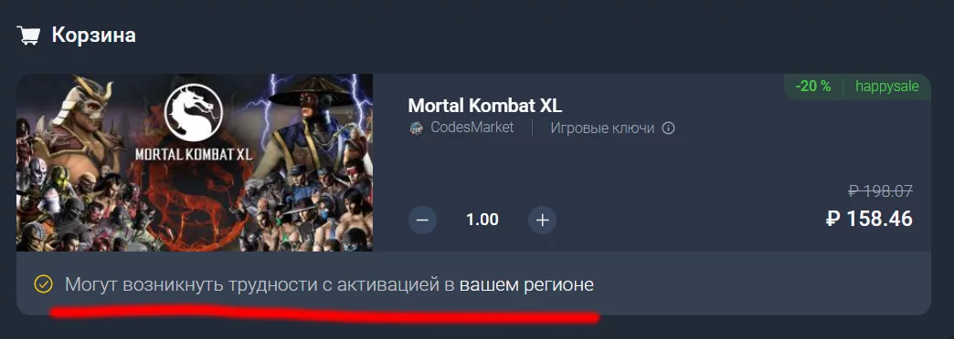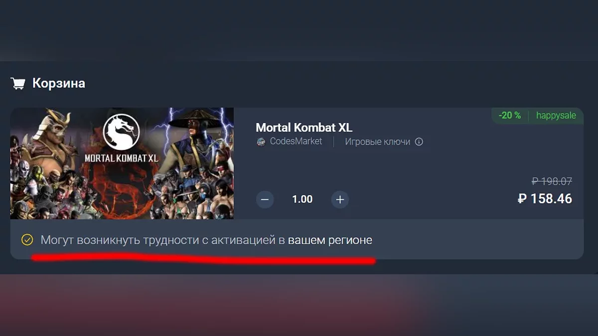 В связи с санкциями многие издатели удалили свои игры из российского Steam. В таком случае с активацией ключа в этом регионе могут возникнуть проблемы. Соответствующая надпись будет в описании товара: