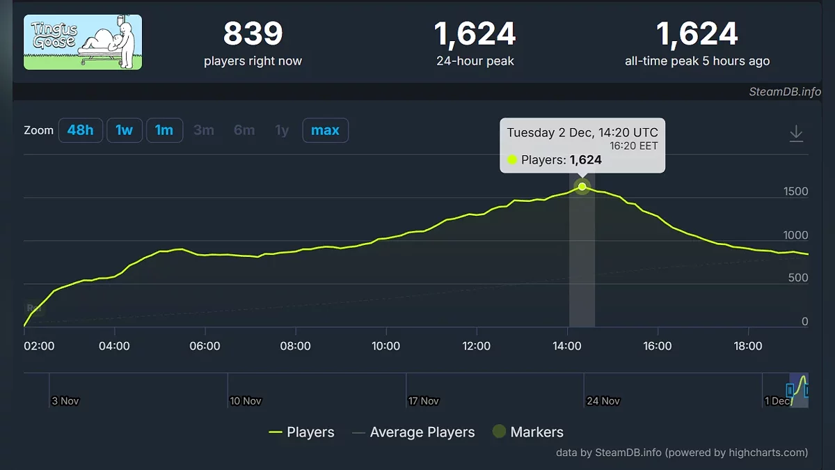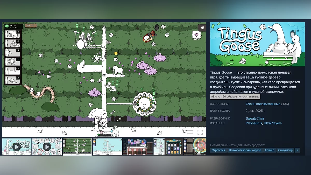 Совсем недавно в Steam релизнулась необычная игра под названием Tingus Goose, которая в первые же часы привлекла более 1,6 тыс геймеров и получила очень положительные отзывы. К примеру, на момент написания новости проект имеет рейтинг 99%.