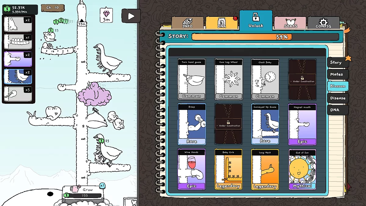 Странно-прекрасная ленивая игра, где ты выращиваешь гусиное дерево, соединяешь гусят и смотришь, как хаос превращается в прибыль. Создавай причудливые линии, открывай апгрейды и найди дзен в гусиной экономике.