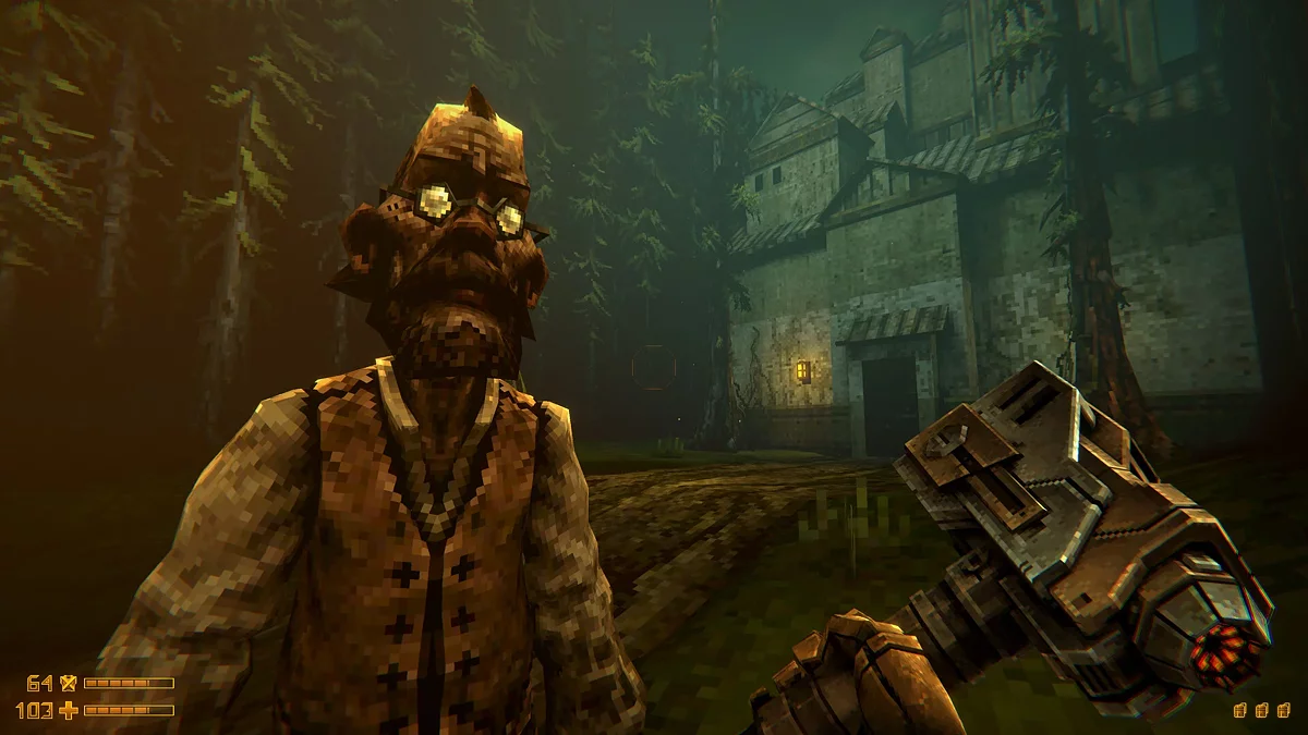 Визуальный стиль построен на низкополигональных моделях, пиксельных текстурах и выразительном освещении, создавая намеренно «сырой», но художественно цельный образ, напоминающий золотую эпоху FPS.