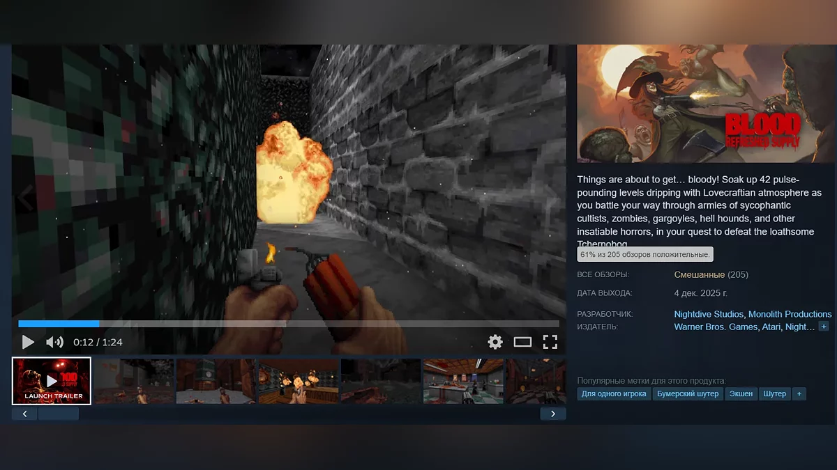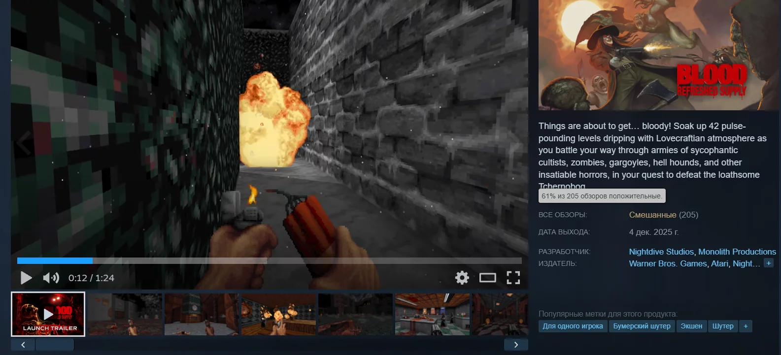 На PC и консолях вышла обновленная версия культового шутера Blood — в Steam игра получила смешанные отзывы