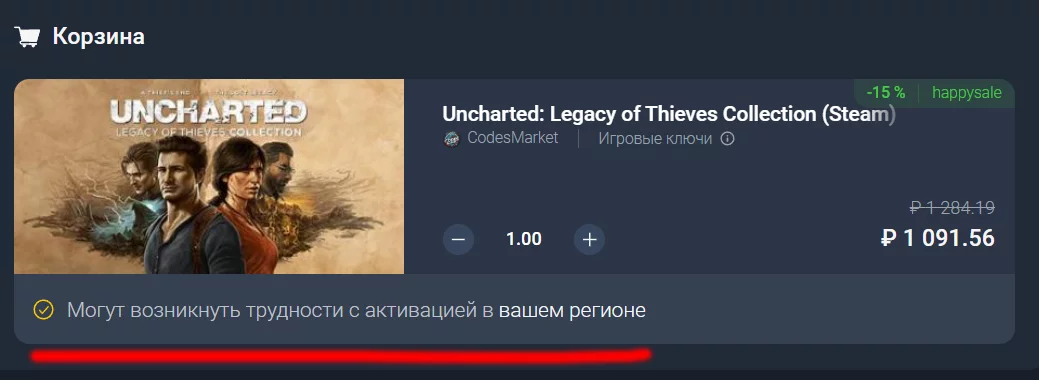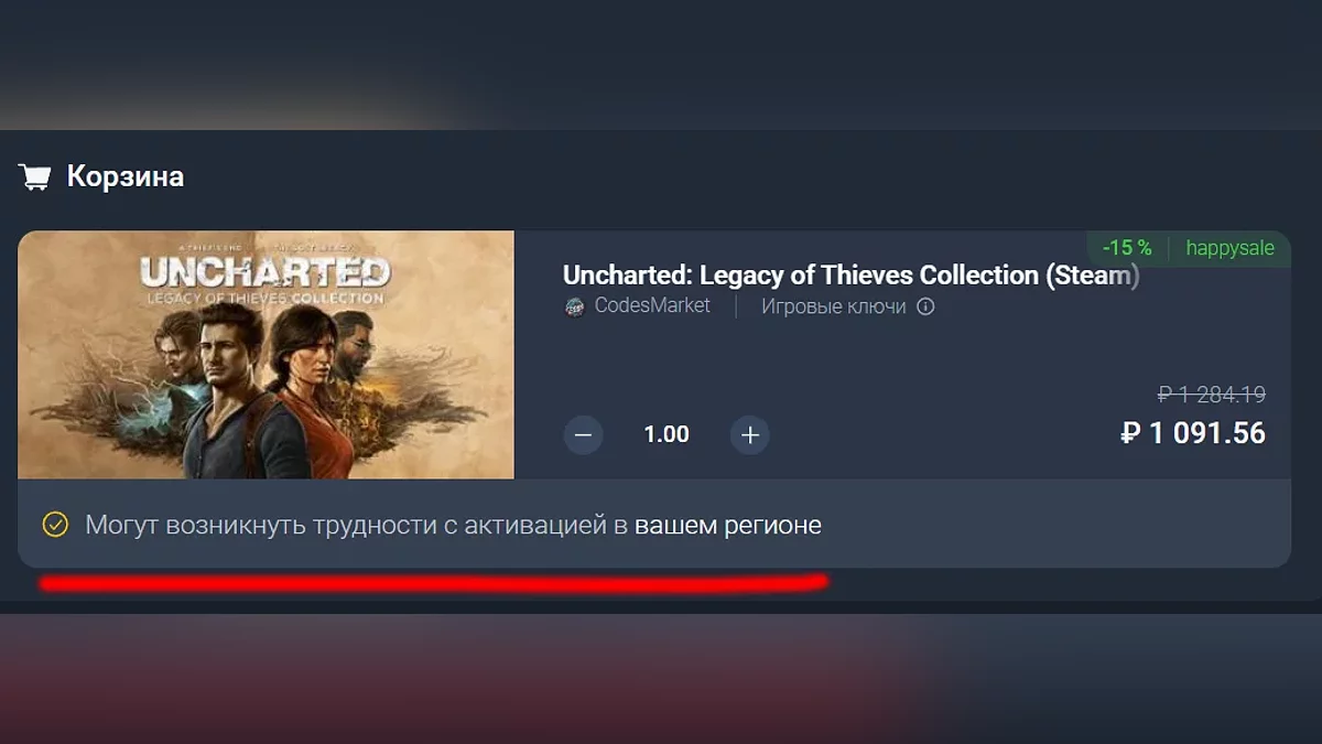 В связи с санкциями многие издатели удалили свои игры из российского Steam. В таком случае с активацией ключа в этом регионе могут возникнуть проблемы. Соответствующая надпись будет в описании товара: