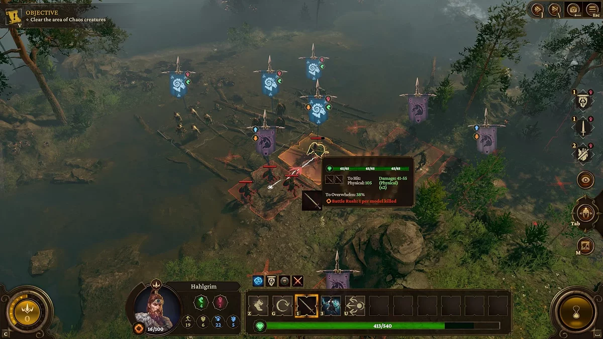 Кампания из 18 заданий следует за чемпионом Халгримом, который ищет союзников, включая эльфов и даже временную поддержку Лунной Империи, чтобы отразить вторжение из Дорастора. Бои проходят на гексагональных картах, где важны рельеф местности, зона контроля и грамотное распределение очков действий, позволяющих двигаться, атаковать или использовать способности.
