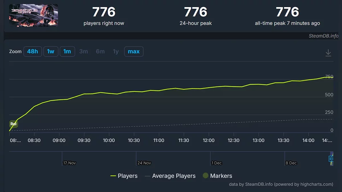 Что касается онлайна, в первый день в игре было зафиксировано 776 игроков, но цифра продолжает расти.