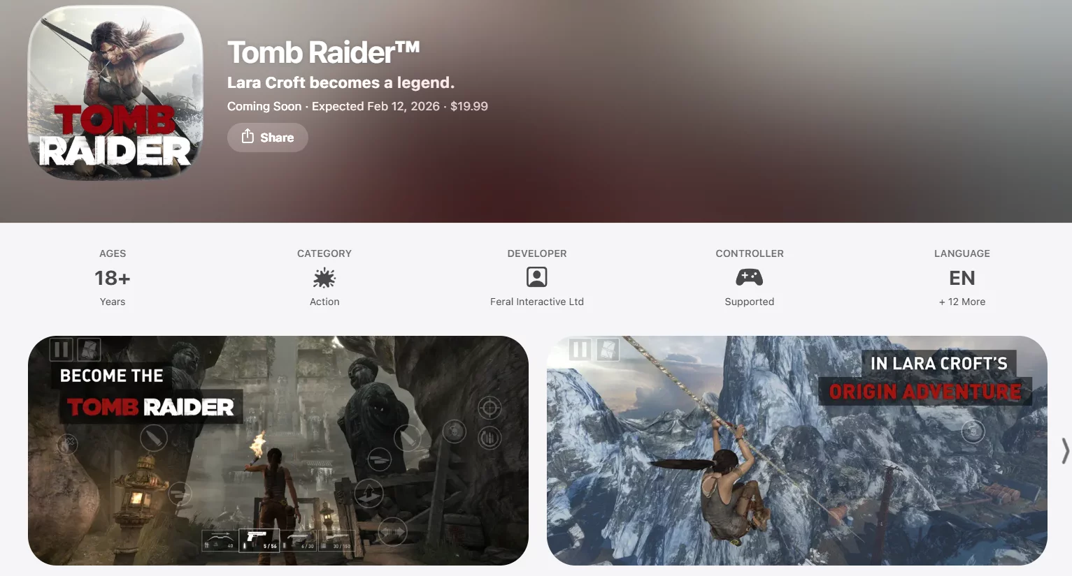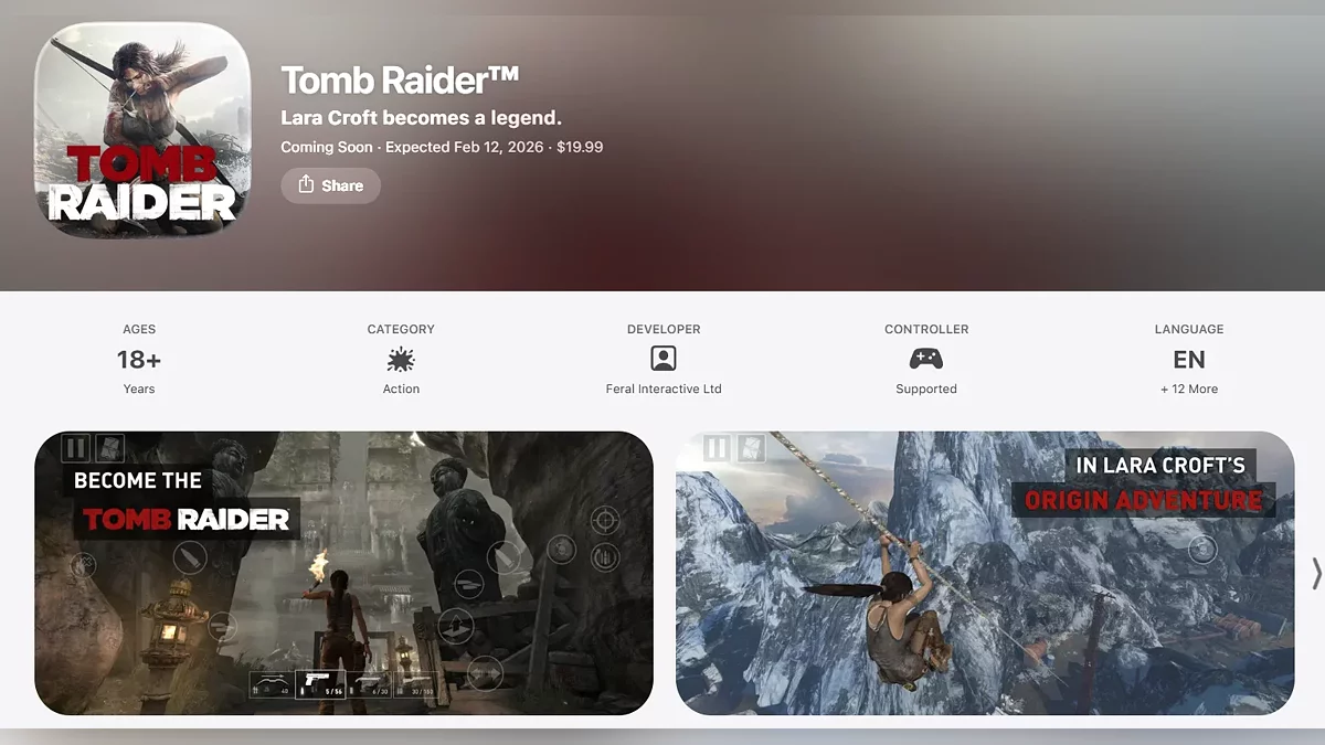 Компания Feral Interactive анонсировала выход Tomb Raider 2013 года на iOS и Android. Релиз состоится 12 февраля 2026 года. Это будет первая полноценная современная консольная игра серии Tomb Raider, официально вышедшая на мобильных устройствах.
