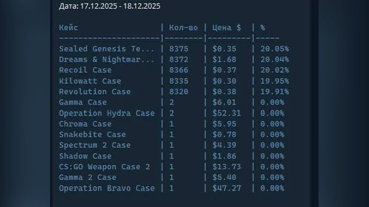 Если информация подтвердится, последствия для рынка скинов могут оказаться серьёзными. Речь идёт прежде всего о старых кейсах, стоимость которых в таком случае способна резко вырасти — просто из-за того, что новые экземпляры больше не будут появляться в игре.