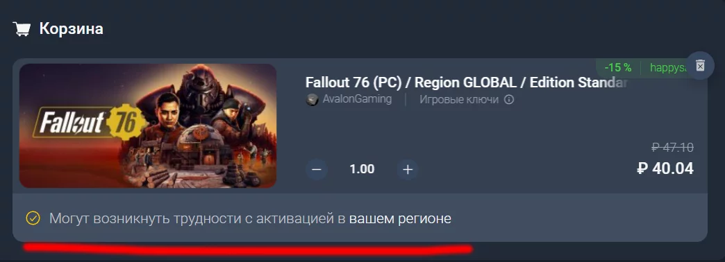 В связи с санкциями многие издатели удалили свои игры из российского Steam. В таком случае с активацией ключа в этом регионе могут возникнуть проблемы. Соответствующая надпись будет в описании товара: