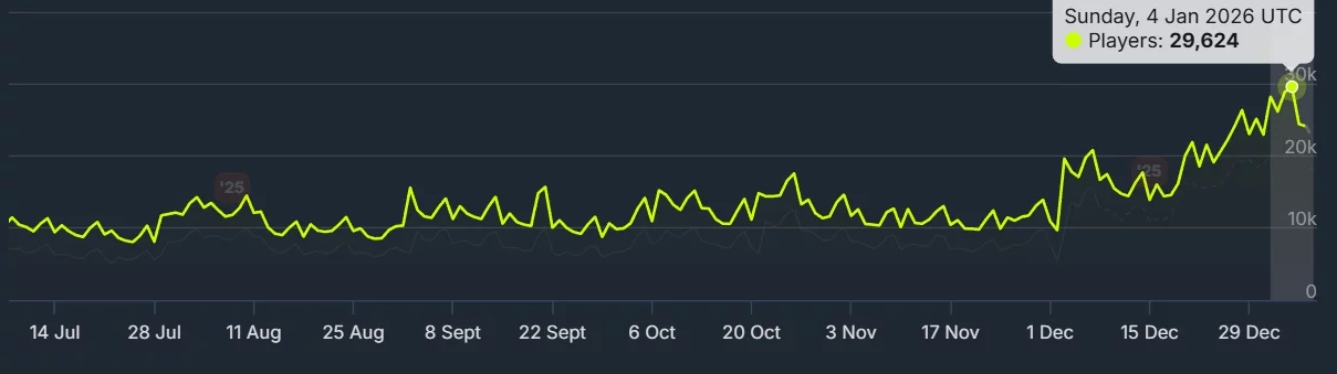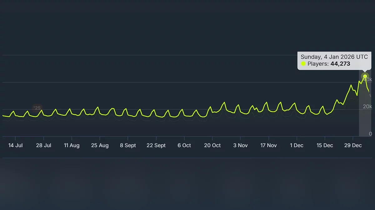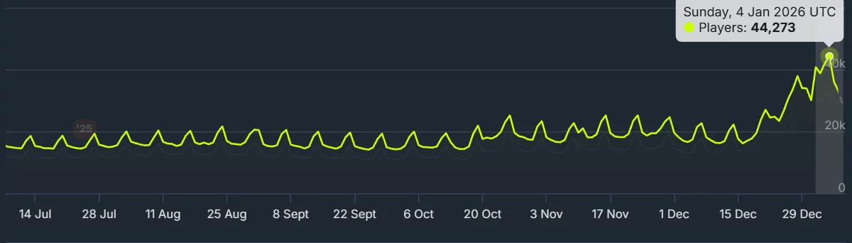 4 января онлайн превысил 44 тыс игроков — это наибольший показатель за последние двенадцать месяцев.