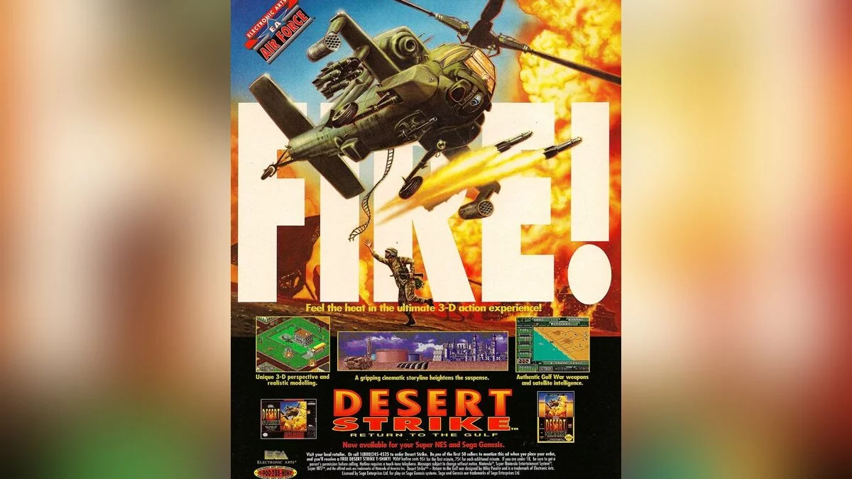 Что касается Desert Strike, то это была изометрическая стратегия в 16-битном формате, которая вышла в 1992 году. Впоследствии было выпущено еще четыре игры, а последней в серии стала Nuclear Strike.