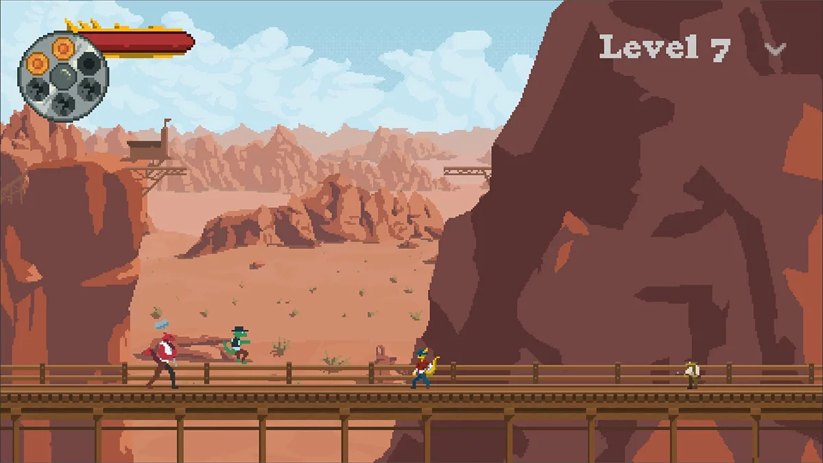 Guns & Thorns — экшен-платформер, вдохновлённый эстетикой Дикого Запада. Главный герой — ящерица Ваати. Его мирное путешествие прерывается нападением гигантских орлов, которые крадут ценную вещь. Игроку предстоит пересечь пустыню, чтобы вернуть украденное. Страница в Steam.