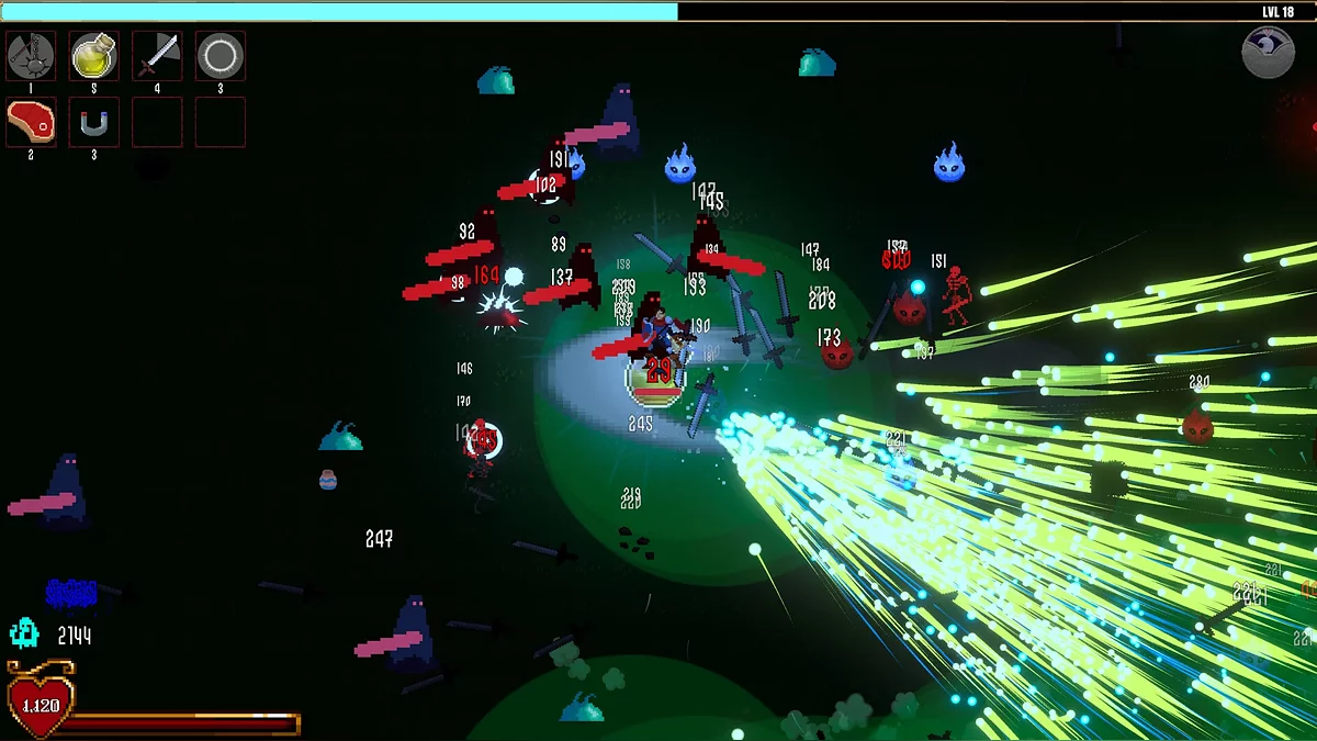 Crimson Loop — двухмерный экшен-рогалик с видом сверху и пиксельной графикой, где нужно отражать волны монстров, стараясь выжить как можно дольше. Страница в Steam.
