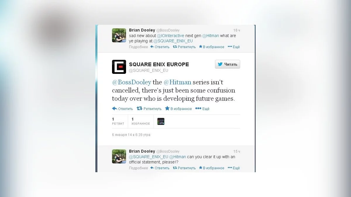 Что заставило Ричарда Найта (Richard Knight) написать о том, что игра мало того, что не выйдет, да и еще была закрыта в прошлом году, мы не знаем. Тем не менее, Square Enix Europe в своем Twitter успокоила всех поклонников игры, сказав о том, что серия Hitman не закрыта, а информация, которая так взбудоражила пользователей, является не более чем недопониманием.