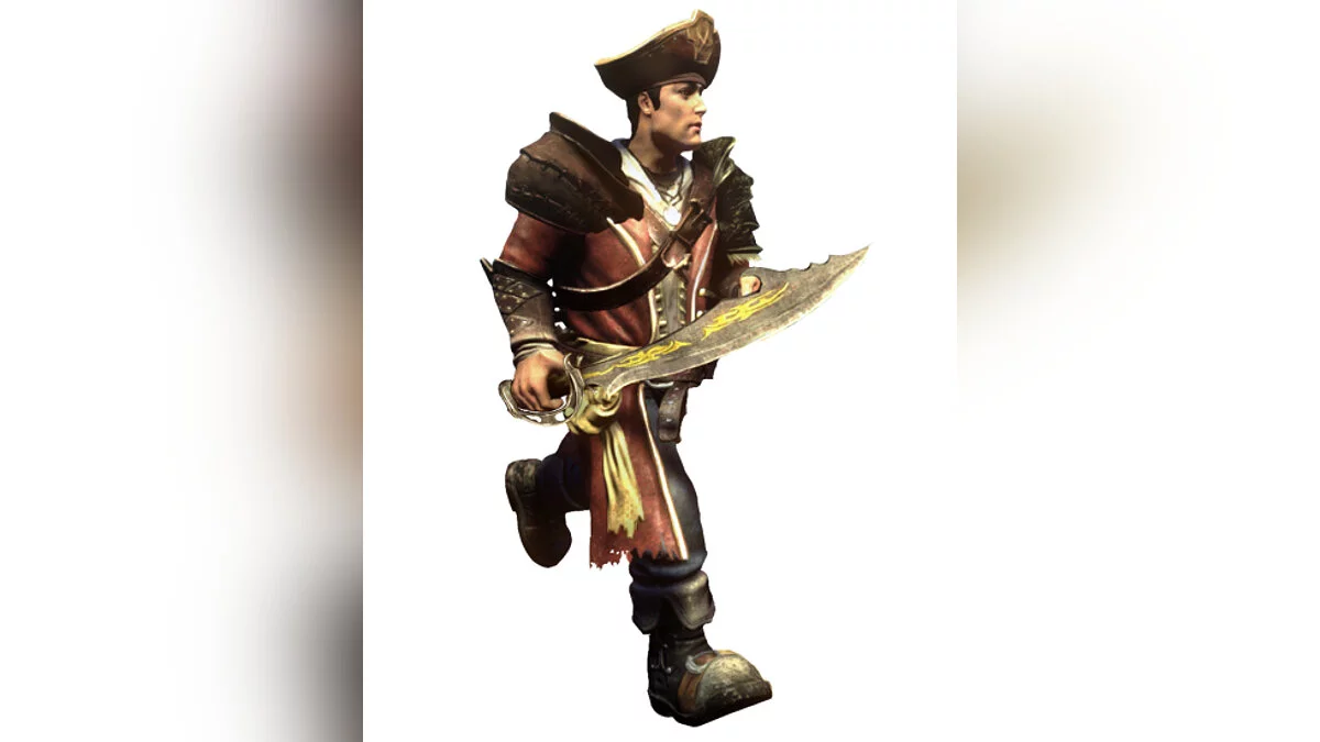 Peirates был известным грабителем. Он обожал пускаться в приключения и захватывать грузовые суда, чтобы потребовать с них дорогие предметы. Известен под именем Пит в неформальных кругах. Его используемое в море оружие должно быть и практично, и эффективно, поэтому оно не раз перерабатывалось. С помощью этого меча можно ловить и есть рыбу, а также перерезать глотки своим врагам.