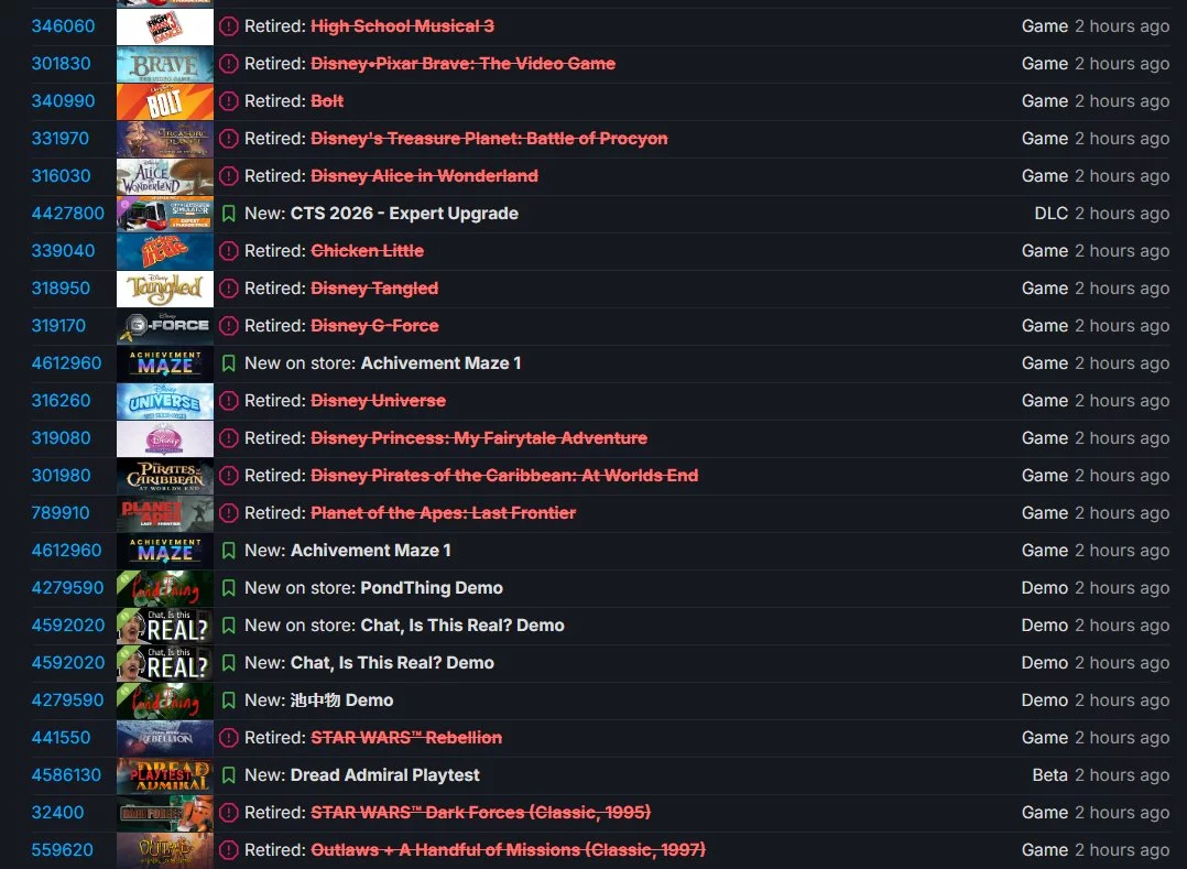 Отметим, что в январе компания Disney удалила из сервиса Steam сразу 14 игр: Phineas and Ferb: New Inventions, Disney's Hercules, Stunt Island, Lucidity, Afterlife, Disney Pixar Toy Story Mania, Disney Pixar Finding Nemo, Disney The Princess and the Frog, Disney Fairies: Tinker Bell's Adventure, Disney Cars Classics, Disney Toy Story Pack, Disney Winnie the Pooh, Disney Planes и Armed and Dangerous.