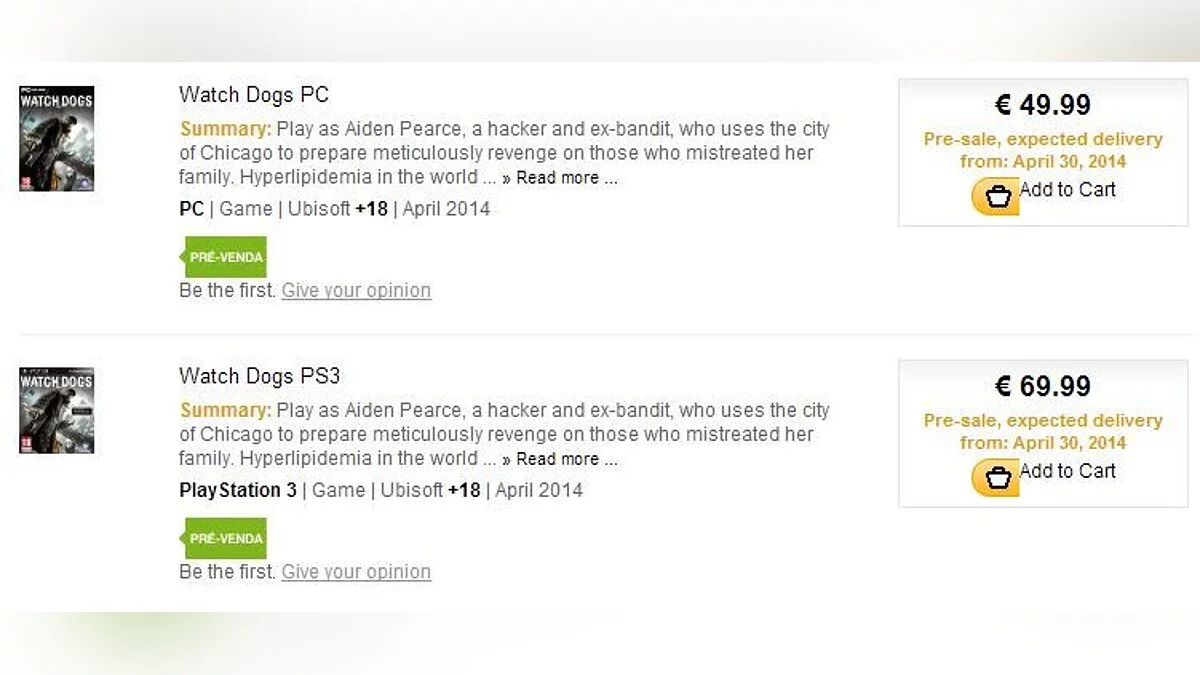 В португальском магазине Fnac появилась информация о дате релиза игры. По заявлению продавца, Watch Dogs выйдет 30 апреля.