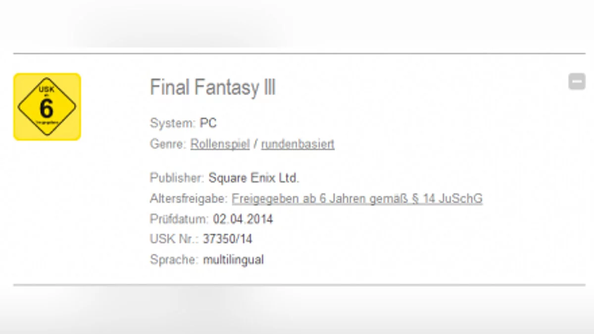 Final Fantasy III появится на PC, если верить информации, опубликованной немецким рейтинговым агенством. А такие люди лгать не будут.