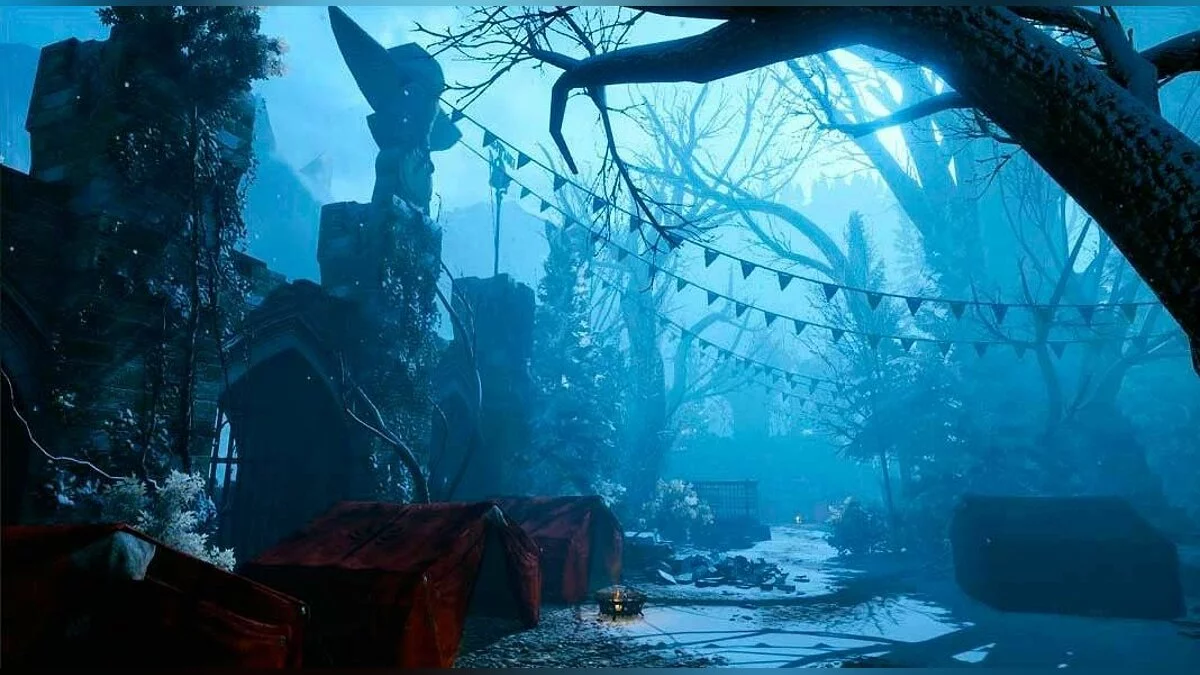 Скриншоты показывают достаточно большую локацию, в которой есть как опасные заледеневшие скалы, холмы, заснеженные снегом, а также обледеневшие леса и здания. Похоже, что здесь произойдут какие-то важные события. На скриншоте виден Архидемон — главный враг игры, а на территории есть какие-то странные наросты красного цвета.