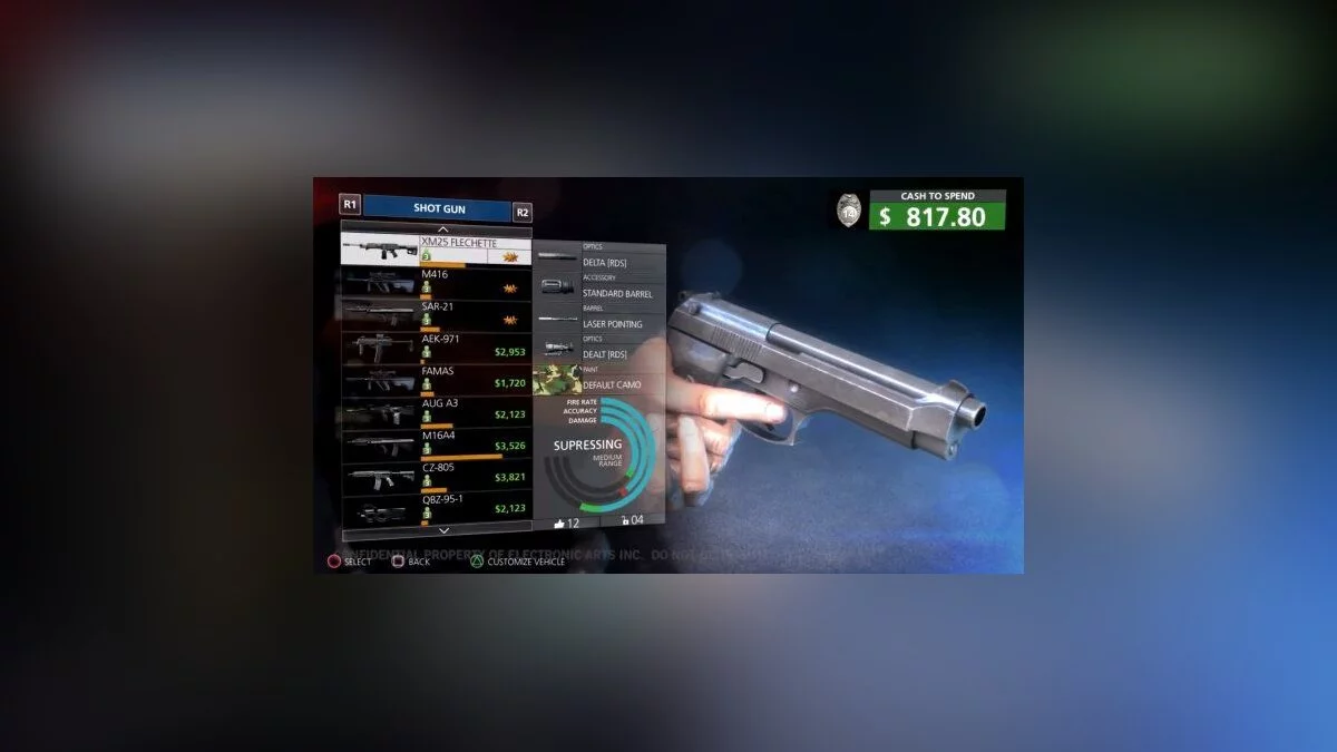 Один из скриншотов Battlefield: Hardline, полученных из слитого вчера в сеть геймплейного видео (не самого свежего, как оказалось), явно намекает на то, что в игре появится возможность покупать оружие.