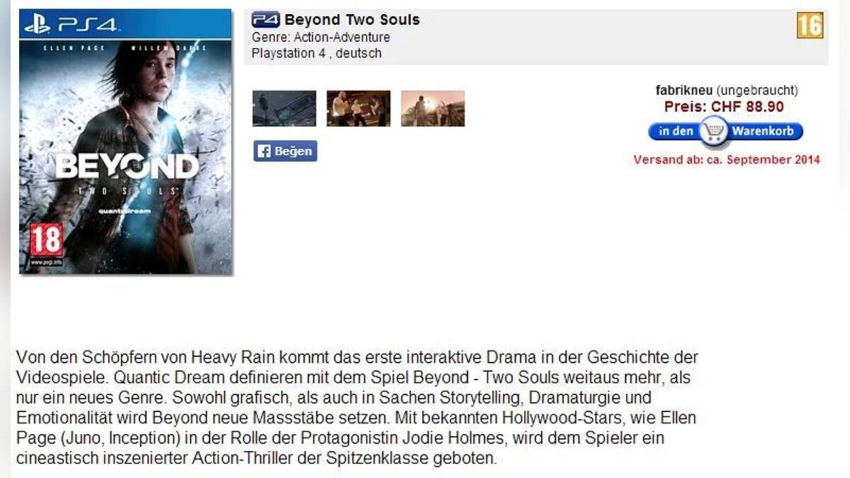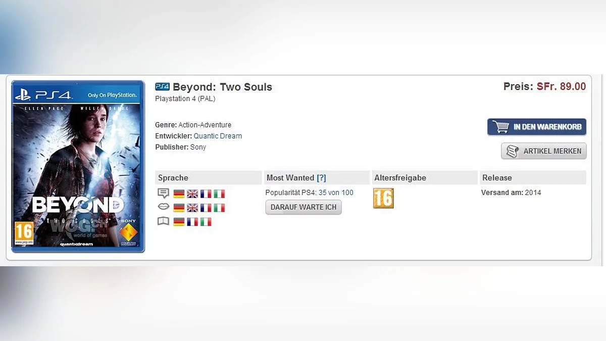PS4-версию Beyond: Two Souls заметили среди ассортимента товаров сразу нескольких немецких магазинов.
