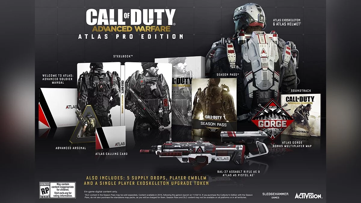 Тем, кто хочет купить коллекционное «простое» издание Call of Duty: Advanced Warfare приглянется вариант Atlas Limited Edition. Заплатить придется 100 $ (около 3 600 рублей). Единственное отличие от Atlas Pro Edition — это отсутствие сезонного абонемента.