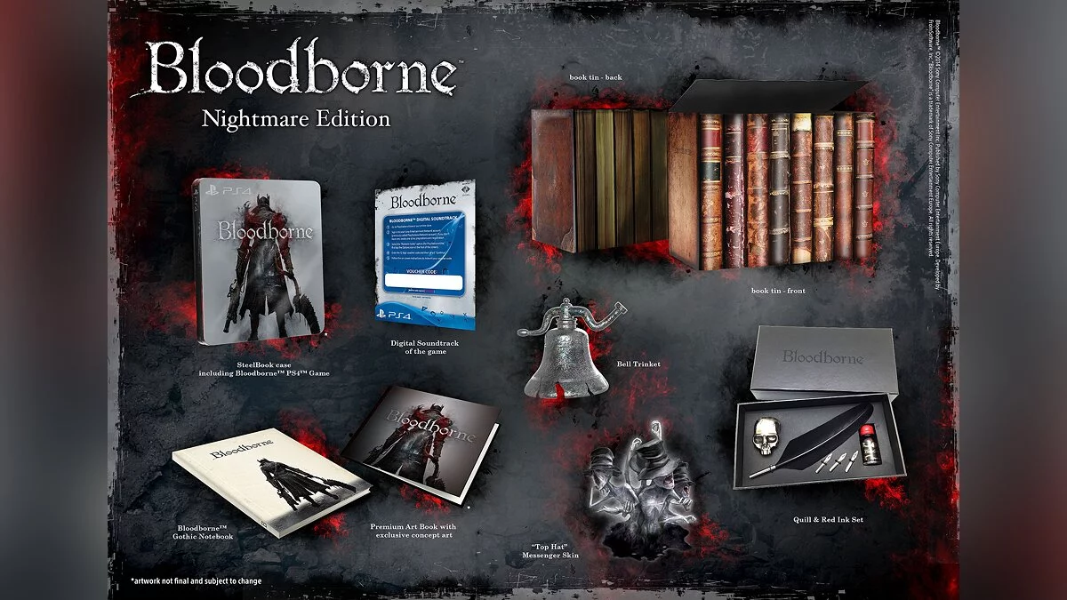 Поинтереснее выглядит Nightmare Edition, за которое предстоит отдать 119,99 € (около 8 500 рублей). В него входят содержимое коллекционного издания, блокнот Bloodborne в готичном стиле, набор красных чернил с пером, скин посланника «Top Hat» и брелок-колокольчик.
