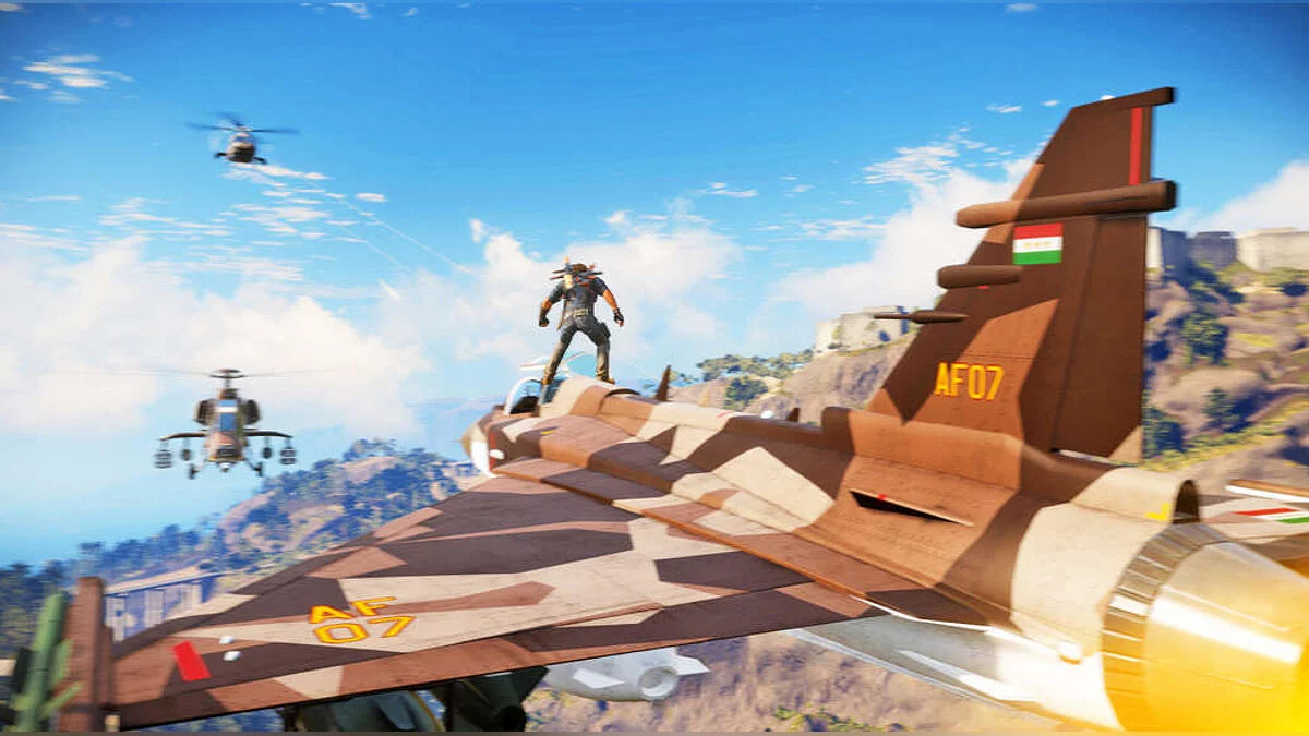 Традиционно для серии Just Cause главный герой будет выполнять самые разные невозможные трюки. Один из таких — выкидывание пилота самолета прямо на ходу и самостоятельное управление реактивной машиной с открытой кабиной: