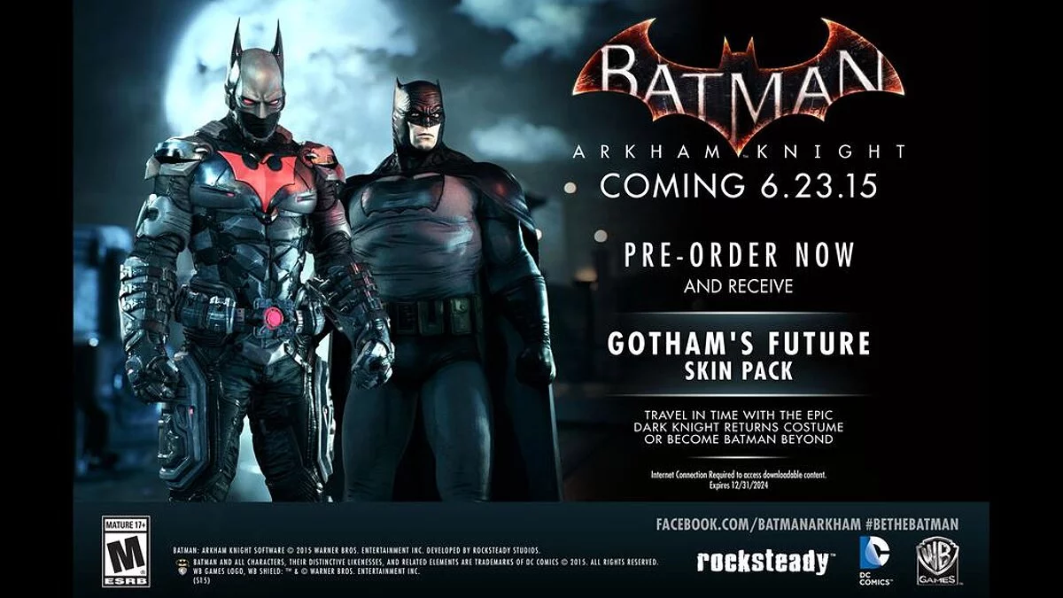 Что до DLC, то предварительный заказ игры обеспечит вам костюмы из мультсериала Batman Beyond и комикса Dark Knight Returns. Они расположились на изображении.
