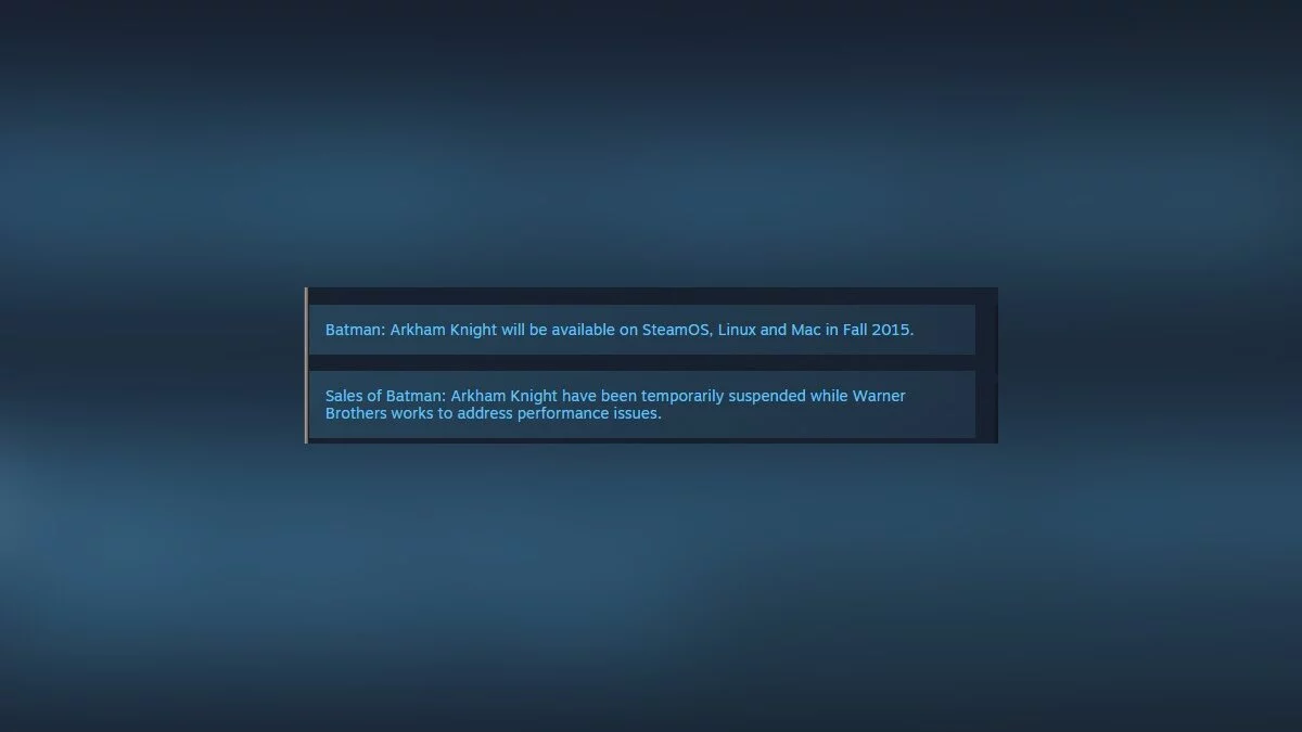 Хорошего в этом, конечно, мало — такая длительная задержка говорит о том, что исправления Windows-версии Batman: Arkham Knight потребуют очень много времени, и только после того, как все они будут проведены, разработчики займутся портированием на Linux, Mac и SteamOS.