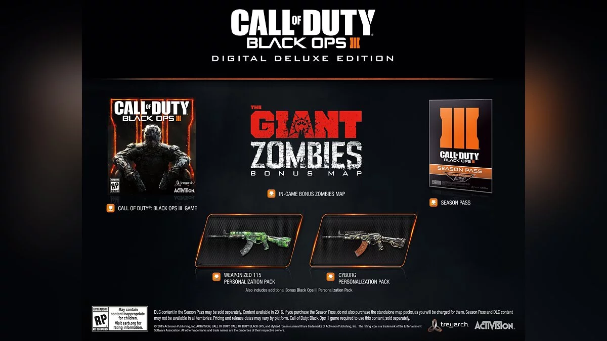 Другие издания несколько проще. Эксклюзивное цифровое издание Black Ops 3 порадует парой наборов скинов для оружия и сезонным абонементом: