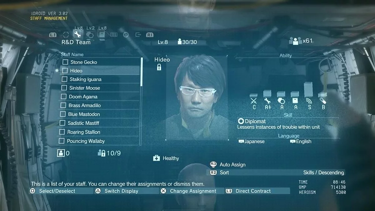 Играя в Metal Gear Solid 5: The Phantom Pain, не упустите возможность нанять главного разработчика серии Хидео Кодзиму (Hideo Kojima) на базу.