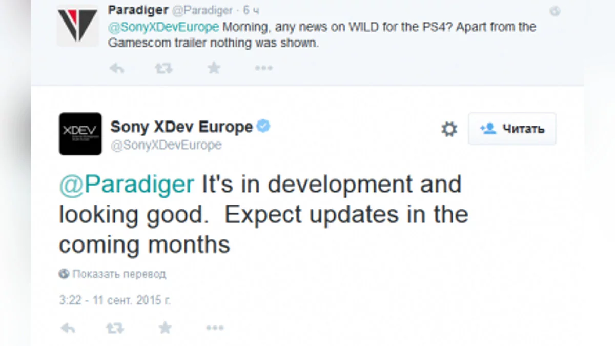 Сегодня европейское отделение Sony External Development Studio в своем твиттере подтвердило, что WiLD жива, процесс разработки идет по плану, а больше информации следует ожидать в ближайшие пару месяцев.
