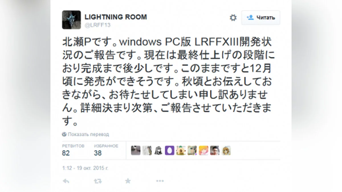 Мы готовы поделиться новостями относительно порта Lightning Returns на PC. Сейчас мы находимся на финальной стадии, и сообщаем, что релиз состоится до конца декабря. Сожалеем, что вам так долго пришлось ждать. Вскоре вас ожидает больше новостей, так что оставайтесь с нами.