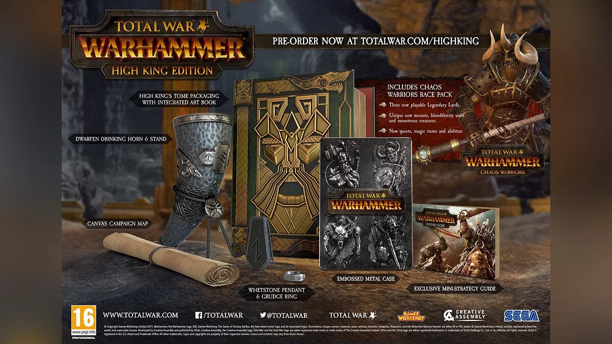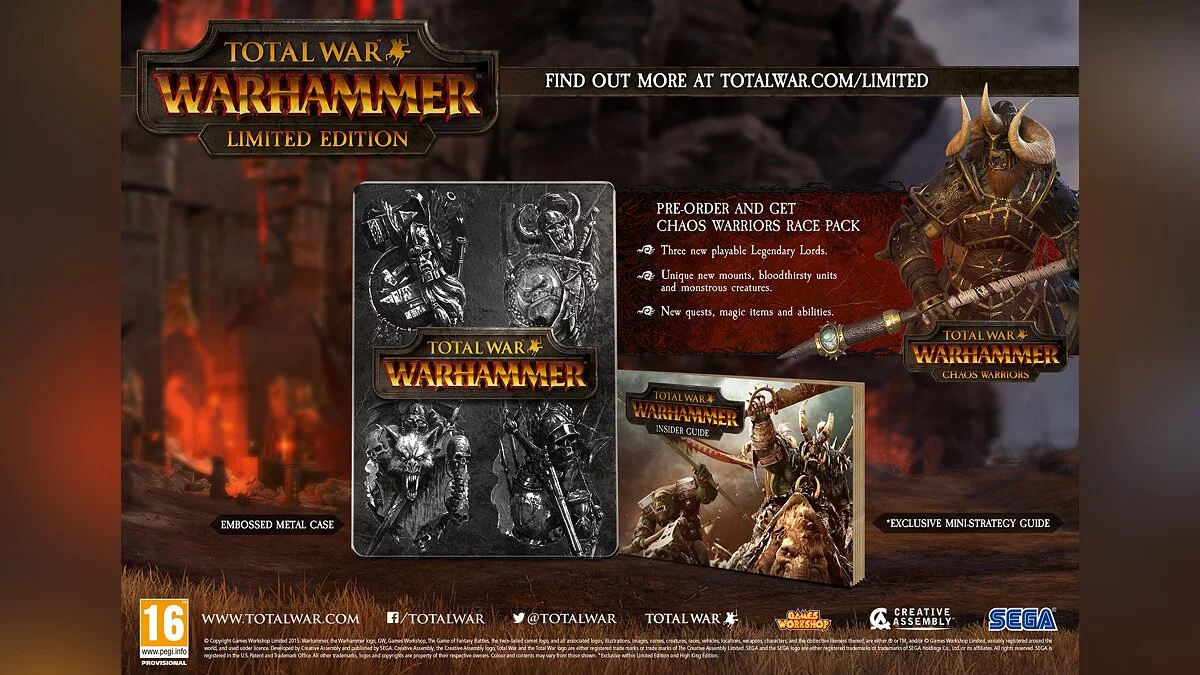 Компания SEGA и студия The Creative Assembly определились с датой выхода стратегии Total War: Warhammer, а также представили два коллекционных издания. Кроме того, разработчики представили фракцию «Хаос» и показали посвященный ей трейлер.