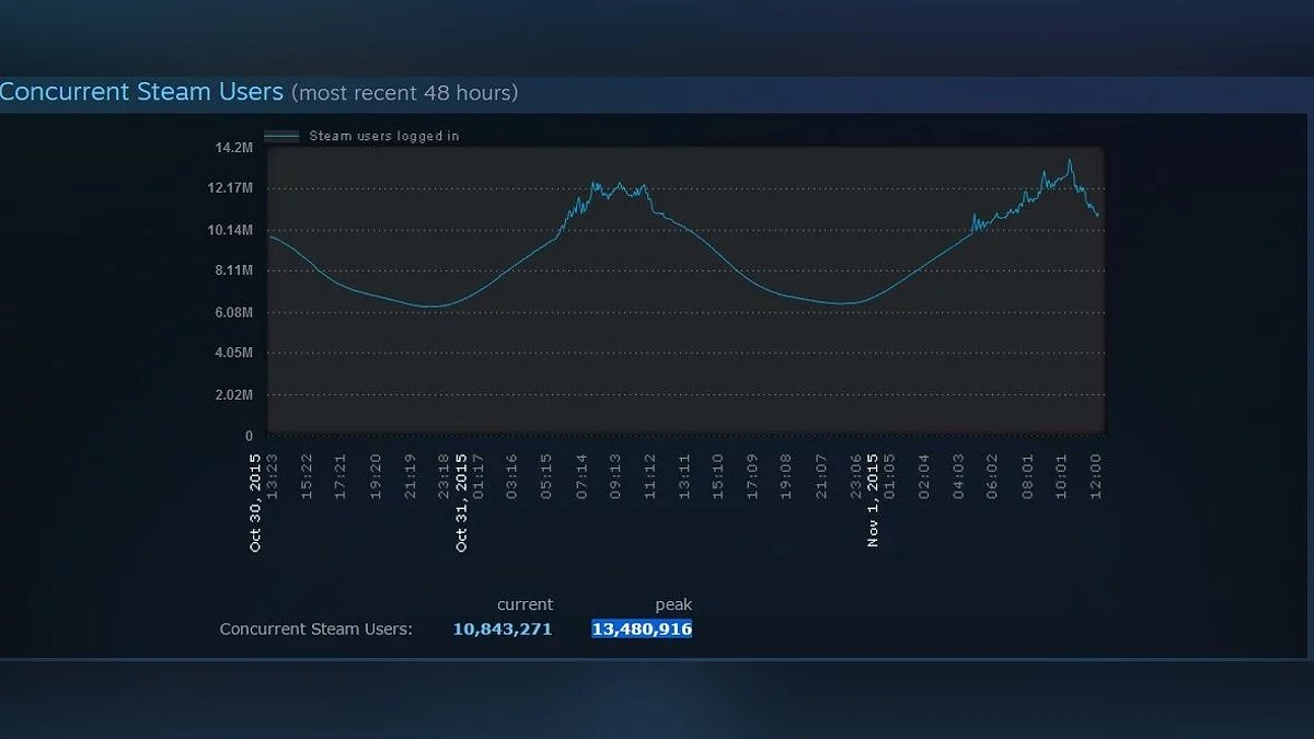 В итоге, 1 ноября 2015 года в сети Steam было 13 480 916 человек, что сразу же было зафиксировано статистикой сервиса: