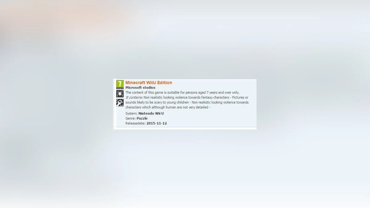 Рейтинговая организация PEGI разместила на своем сайте оценку для Wii U-версии симулятора чего угодно Minecraft. Похоже, что Microsoft готова помочь Nintendo и спасти бедственное положение Wii U, поскольку Minecraft отлично продается на любой платформе.