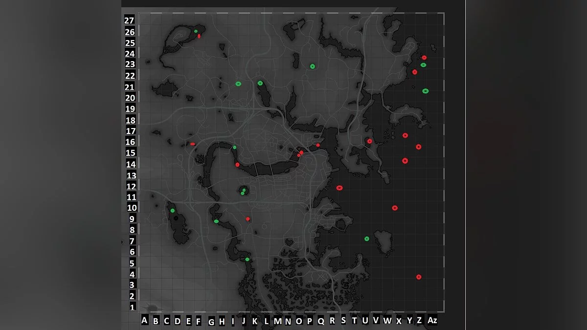 Результат он свел в одну карту, в которой зеленым отмечены места с силовой броней или лутом, а красным — места интереса: