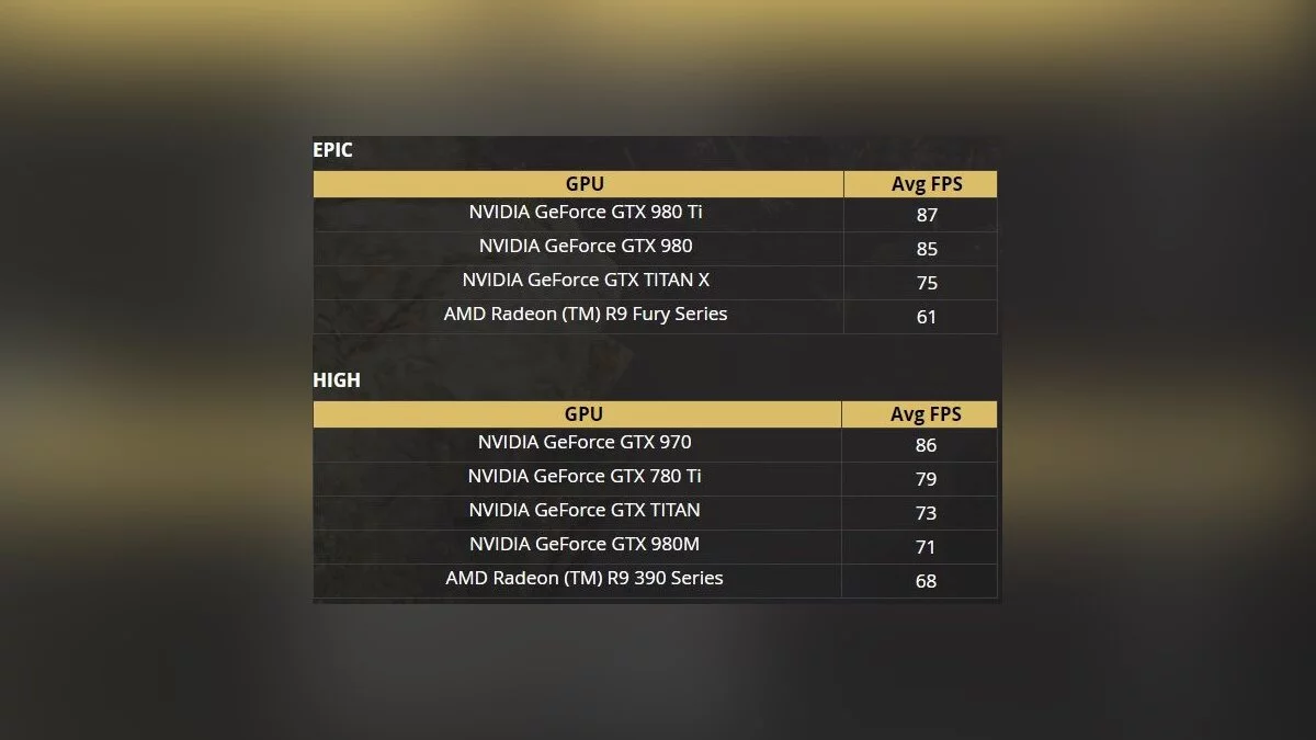 Также появились картинки, которые не нуждаются в представлении. Epic Games посчитала средний FPS, который будут показывать соответствующие видеокарты на ультра, высоких, средних, низких настройках графики.