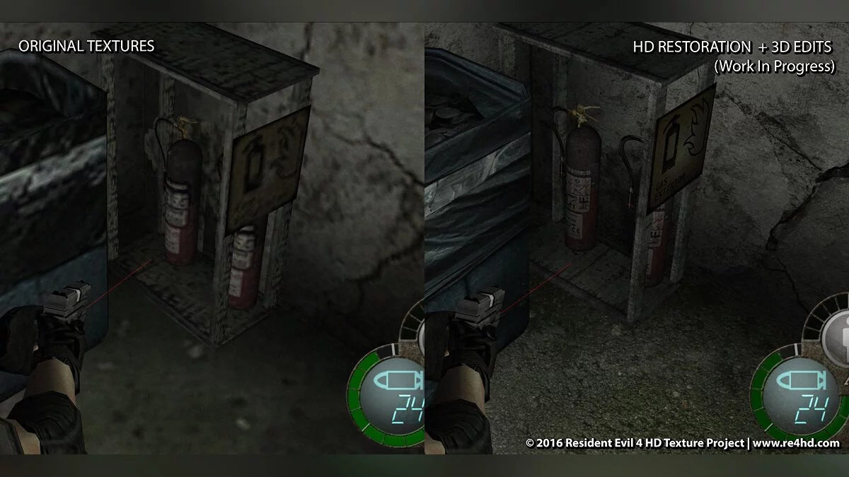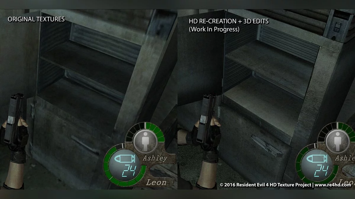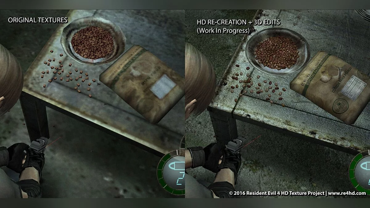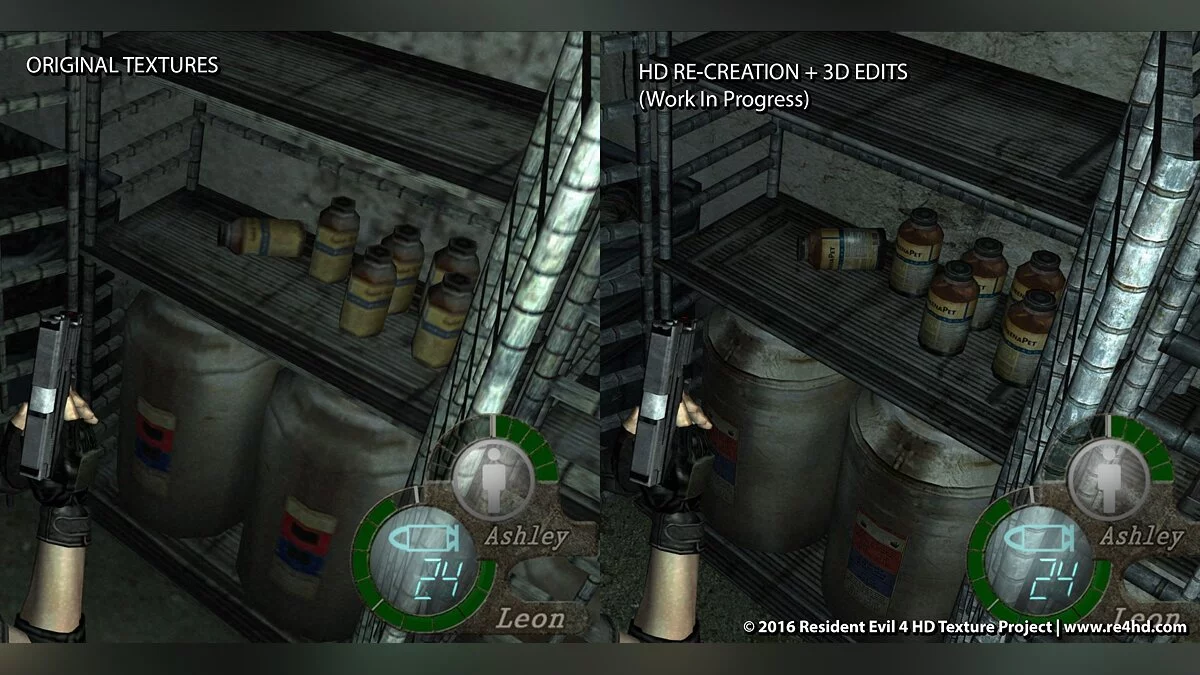 Улучшенная версия Resident Evil 4 получит текстуры высокого разрешения, а также некоторые дополнительные эффекты. Работа над проектом в самом разгаре, но разработчикам нужно еще многое сделать, прежде чем Resident Evil 4 HD Project будет полностью завершенной. Ниже можете просмотреть скриншоты, на которых сравниваются оригинальная Resident Evil 4 и Resident Evil 4 HD Project.