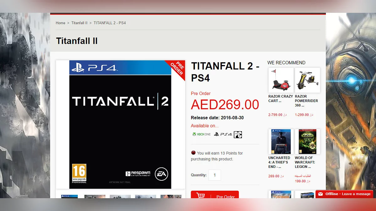 Titanfall 2 выйдет 30 августа 2016 года на PlayStation 4, Xbox One и PC, согласно информации ближневосточного розничного ритейлера MEPlay. Возможно... этого не случится. Раннее в этом месяце Electronic Arts подтвердила, что Titanfall 2 не должна выйти в релиз до третьего финансового квартала текущего года, который продлится с 31 октября по 31 декабря.