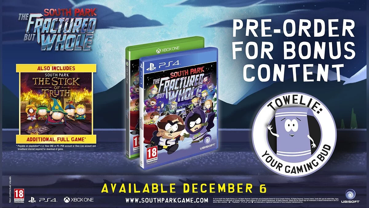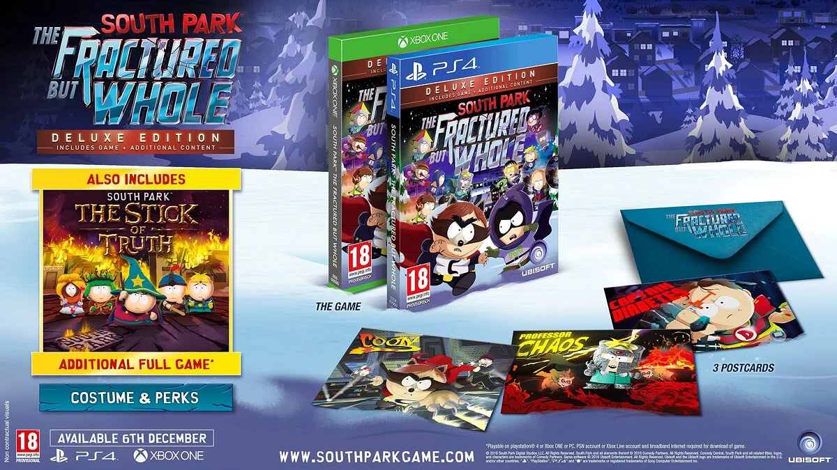 Релиз намечен на 6 декабря для современных платформ. Предзаказавшим любое из четырех изданий игры разработчики подарят полную версию оригинальной South Park: The Stick of Truth.