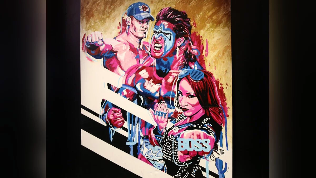 В частности, на портрете можно увидеть Джона Сину (John Cena), Сашу Бэнкс (Sasha Banks) и Последнего Воина (Ultimate Warrior). Стоит отметить, что звезды 80-ых Последнего Воина в действительности уже нет в живых. Рестлер скончался в 2014 году от внезапной остановки сердца.