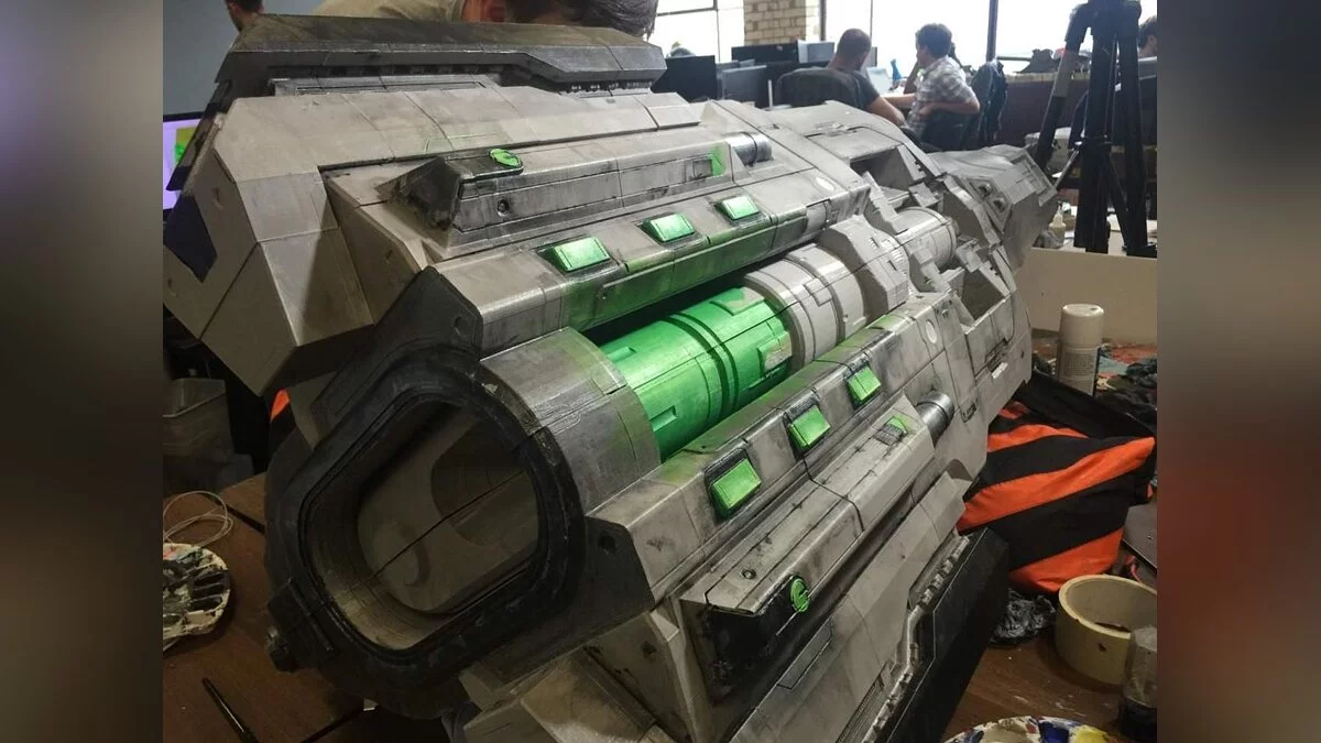 После печати фрагменты нужно было склеить и покрасить, а ещё не собранное оружие привести, что называется, в божеский вид. В итоге получилась полноразмерная реплика BFG из вышедшего в этом году DOOM в масштабе 1:1. Увидев результат, Bethesda отметила, что BFG выглядит такой тяжёлой и массивной, что, наверное, поднять её смогут как минимум три человека.