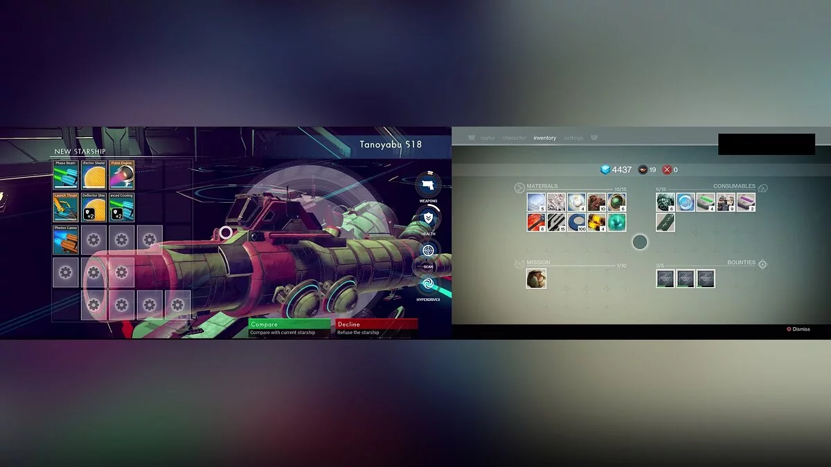 Делать из мухи слона, впрочем, не нужно — дизайн и интерфейс Destiny достаточно удобен и не уступает инвентарной системе множества проектов, так почему бы и не позаимствовать его девелоперам других игр?! Это, конечно, не есть хорошо, но уж лучше так, нежели иначе и плохо. А вообще... No Man's Sky ещё не вышла. Быть может, в финальной версии мы не увидим того интерфейса, что видим сейчас.