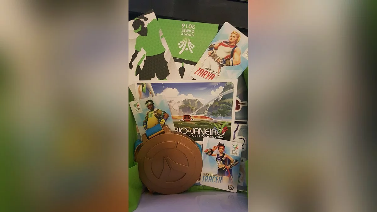 Информация появилась из уст стримерши под ником Laced Up Lauren, сообщившей, что она получила от Blizzard посылку, которая включала в себя золотую медаль с логотипом Overwatch, три карточки с персонажами Лусио, Заря и Трейсер в спортивных обликах, а также набор тематических наклеек.