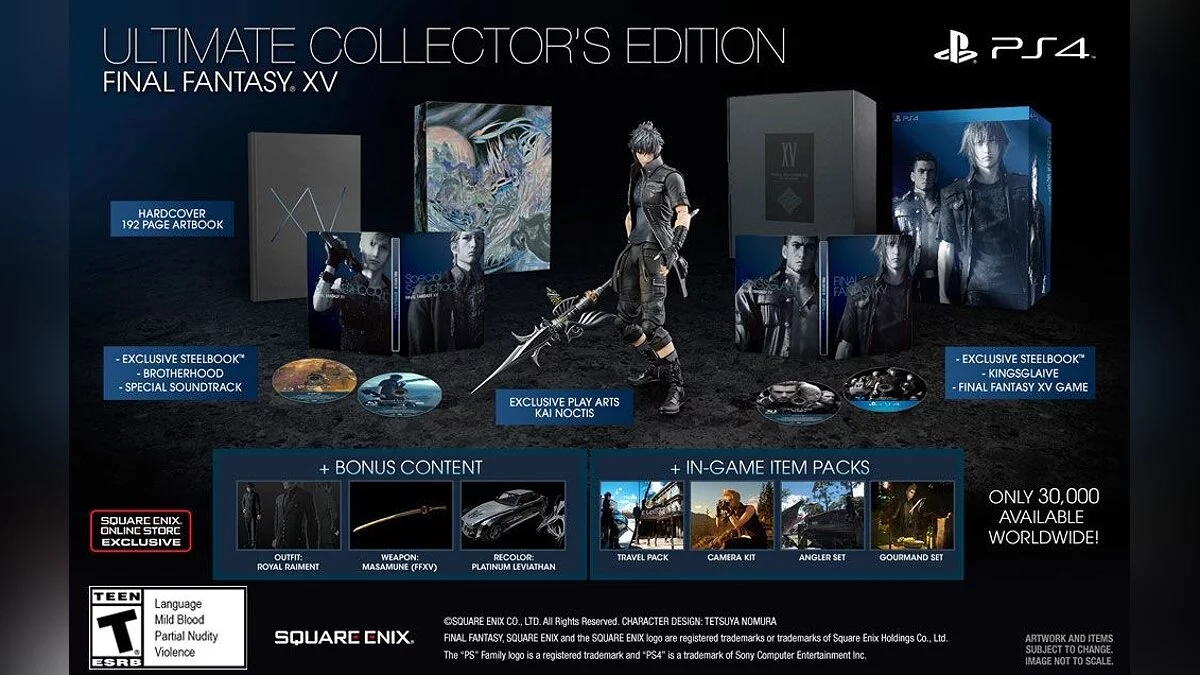 Square Enix сообщила о том, что в составе коллекционного издания Final Fantasy XV не будет сезонного абонемента. За 250 $ мы получим стилбук с игрой, стилбук с фильмом, саундтрек, артбук, эксклюзивную фигурка протагониста и многочисленные внутриигровые бонусы, но при этом останемся без сезонного абонемента...
