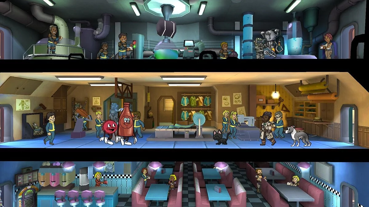 Скоро в Fallout Shelter нагрянут маскоты из дополнения Nuka-World для игры Fallout 4: речь идёт о персонажах Bottle и Cappy. Герои с некоторой периодичностью будут навещать поселенцев убежища и раздавать им крышки и квантовую ядер-колу.