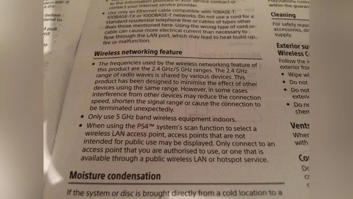 Судя по данным скриншотам, PS4 Slim сможет работать не только в сети Wi-Fi на частоте 5 ГГц, но и на 2,4 ГГц. Однако для более надежного соединения в руководстве пользователя указано, что лучше использовать частоту 5 ГГц.
